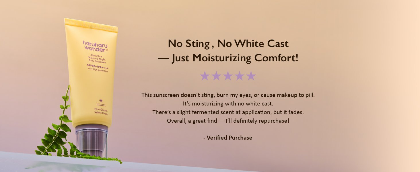 Review: I am constantly outside walking my dog, so finding a reliable, daily sunscreen that doesn’t feel like a heavy chore to apply is essential. This Haruharu Wonder Black Rice Moisture Airyfit Sunscreen has completely exceeded my expectations.Here is why it stands out:The Finish: The packaging promises a ‘velvet finish’, and it actually delivers. Unlike most traditional sunscreens that leave you looking greasy or shiny, this dries down perfectly smooth and feels practically weightless on the skin.No White Cast: This is the biggest selling point. It blends in effortlessly and completely disappears without leaving any chalky residue or ghostly white cast behind.Hydration: It lives up to its ‘Moisture’ name. It feels more like a lightweight daily moisturizer than a heavy SPF, making it incredibly comfortable for all-day wear.The Minor Drawback:The only downside is the size. At 1.69 fl.oz, it is a relatively small tube. If you are applying the recommended two fingers’ worth of product to your face and neck every single day, you will go through this fairly quickly.Verdict: An absolutely top-tier daily sunscreen that feels incredible on the skin and leaves zero trace behind. Highly recommended!”