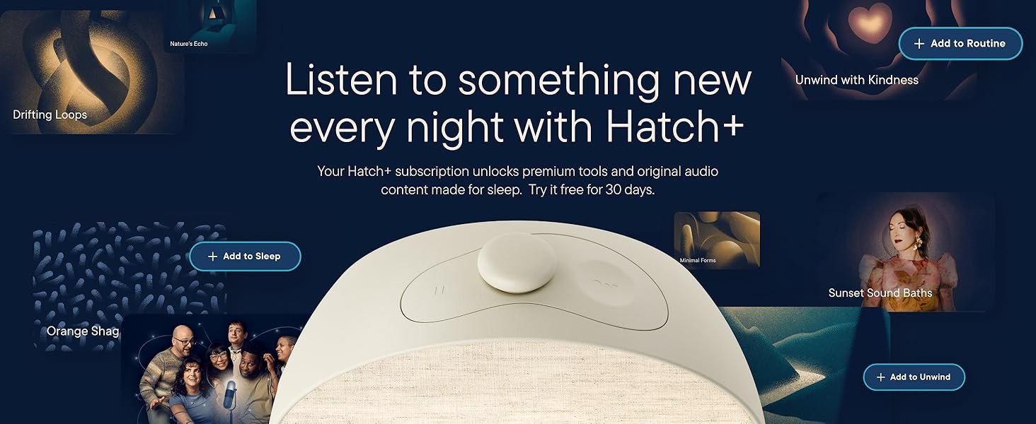 Hatch+ is an optional subscription that gives you access to exclusive sleep content. Your Restore comes with a free 30 day trial that renews at $49.99/year or $4.99/month. Cancel anytime.