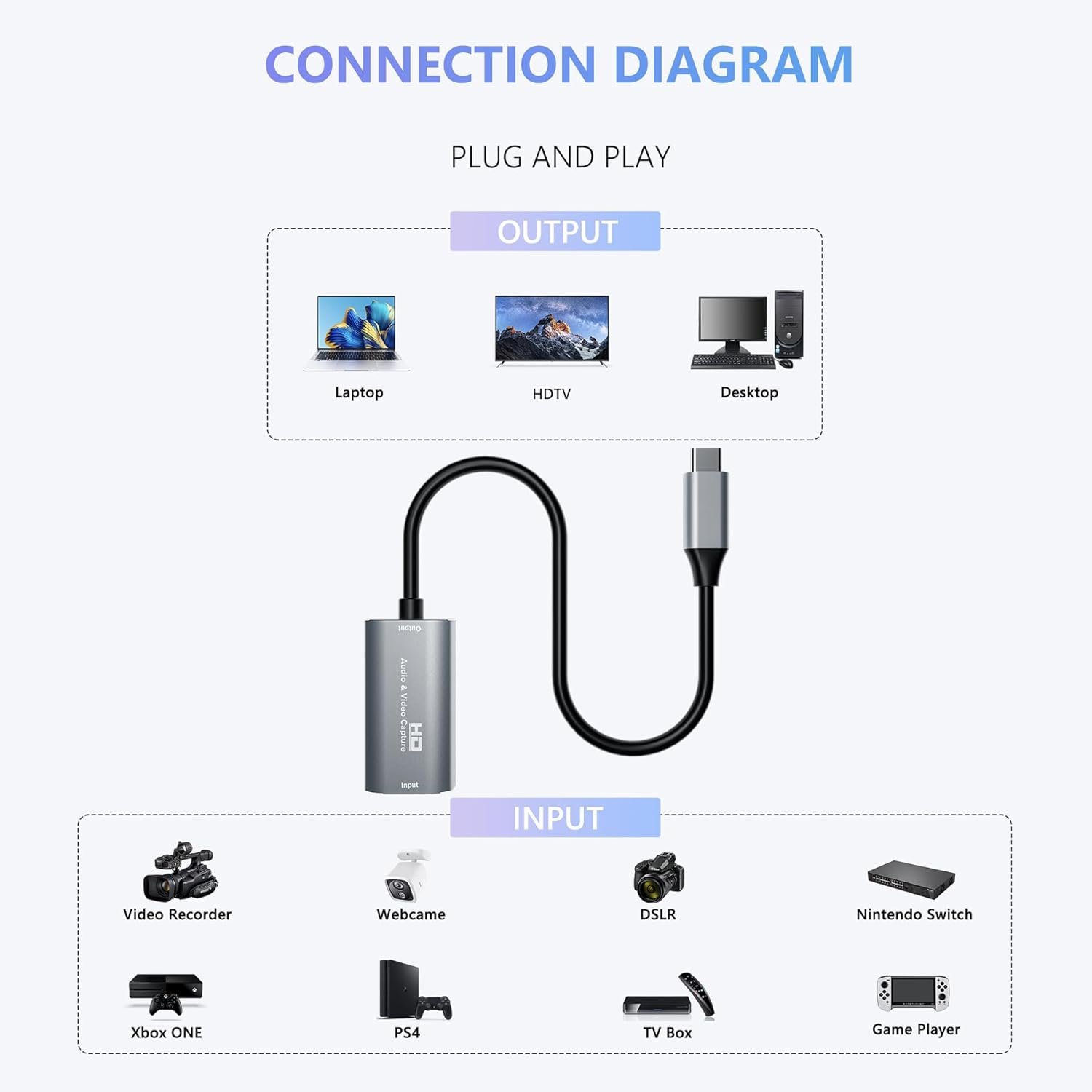 【Easy Plug and Play, Compact & Portable】No driver or external power required—just plug and play via USB 3.0 or Type-C connection to your Windows or macOS computer. Lightweight and compact design makes it easy to carry for outdoor streaming, live shows, or mobile recording setups.