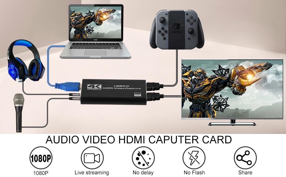 @#@ Capture Card Nintendo Switch, 4K HDMI Video Capture Card, 1080P 60FPS, HDMI to USB 3.0 Capture Card for Streaming Work with Camera/Xbox/PS4/PS5/PC/OBS @@@