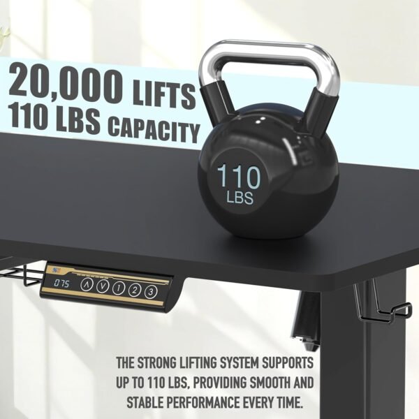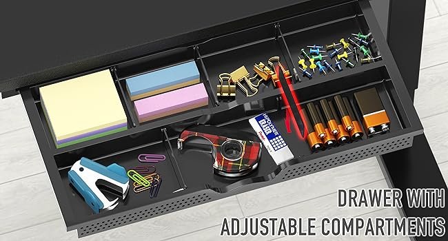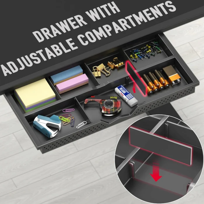 Review: I got this desk in black, to match the furniture in my room. I wanted to get the 48” with the keyboard tray but didn’t have the room, so this one was next best with the drawer.It was easy to put together. Took me about an hour and a half, only because my back was not cooperating. If you’re used to building IKEA or Target items, expect about 45 minutes to an hour. The instructions are simple and easy to follow.I put the wheels on so I can move it around as needed. I rolled it into my room, plugged it in and did the reset per the instructions. That’s where this loses a half star. It took a few tries to do the reset even following the instructions. Then it loses the other half star. After I thought it was set, I raised the desk up and it made a weird noise from the motor when I stopped it, which wasn’t at the top, but then there was no reaction to the down button. I did the reset again to make it go down, figuring I must have missed something. This time I raised it up a little and hit the down button again and it went down, but when it goes down it’s a little noisier than going up.Overall it’s a nice desk, good functionality so far, but the “reset” instructions need a little tweak and I’m hoping the motor and/or axle assembly don’t have a problem off the bat!Since I just built it today, I’m going to give a few weeks and see if anything changes. If it does I’ll add an update.