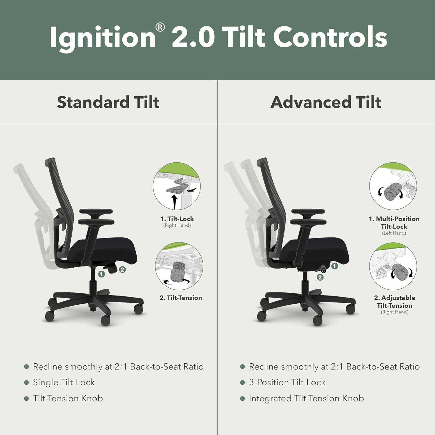 Experience the HON Ignition 2.0 Mid Back Ergonomic Office Chair—engineered for all-day comfort and fatigue reduction. This home office chair adapts to dynamic workplaces. An advanced synchro-tilt mechanism secures your recline, while tension control and pneumatic lift position you level with any desk. The Spectrum mesh maximizes airflow. Integrated ergonomic office chair lumbar support, movable lumbar panel, and seat-slide create reliable office chair back support, turning everyday tasks into a desk chair comfortable routine. Height- and width-adjustable arms add flexibility, and the sturdy five-star base keeps this desk chair with wheels stable. This office chair with wheels glides quietly, making it an easy chair with wheels for shared spaces. Smooth casters and 360° swivel form a maneuverable rolling chair that suits desk chair ergonomic demands. Rated to 300 lb and backed by the HON Limited Lifetime Warranty, it is a steadfast computer chair and ergonomic chair for varied settings. Professionals who want a comfy office chair, office chair comfy choice, or the most comfortable office chair will value its office chair support. Those seeking a comfortable office chair, comfy desk chair, or modern office chair will find Ignition 2.0 meets expectations. When tasks call for office chairs built for focus, simply say, “Ignition is my office chair.”
