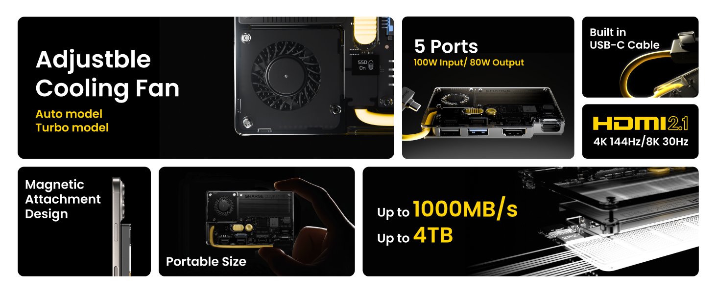 @#@ SHARGE Disk Pro 1TB Portable SSD with Active-Cooling, 4-Port Hub with HDMI 2.1, 10 Gbps Cable, Magnetic External Solid State Drive for MacBook, PC, Console and More @@@