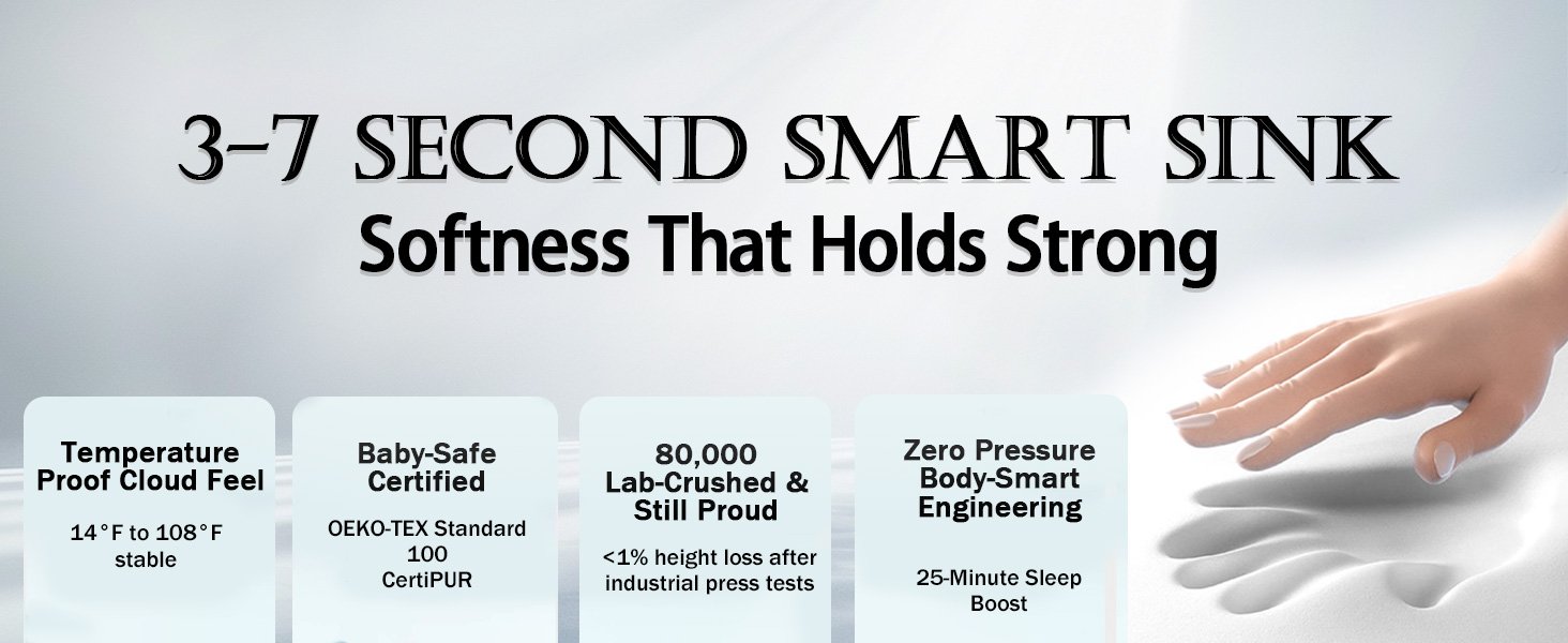 🛡️ 𝐒𝐚𝐟𝐞𝐭𝐲 𝐅𝐢𝐫𝐬𝐭: 𝐂𝐞𝐫𝐭𝐢𝐟𝐢𝐞𝐝 𝐂𝐥𝐞𝐚𝐧 & 𝐇𝐲𝐩𝐨𝐚𝐥𝐥𝐞𝐫𝐠𝐞𝐧𝐢𝐜: ✓ OEKO-TEX&CertiPUR certified – meets the strictest EU textile safety standards ✓ 24 Toxin-Free Promise – no formaldehyde, no silicones, no azo dyes, and no hidden allergens ✓ Zero chemical smell – safe for baby-soft skin, contact-friendly ✓ Asthma and eczema friendly – tested and passed 121+ skin irritation tests When it comes to sleep, only 100% worry-free comfort leads to truly Deep Sleep, restful nights.