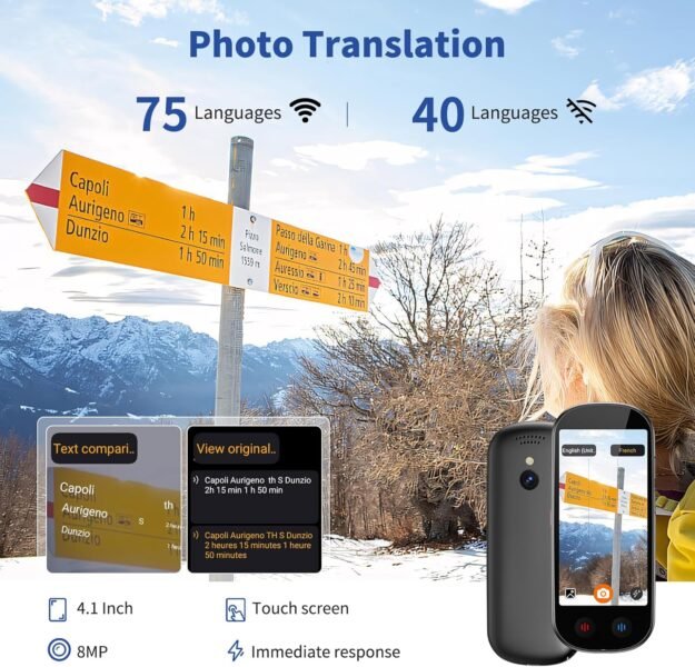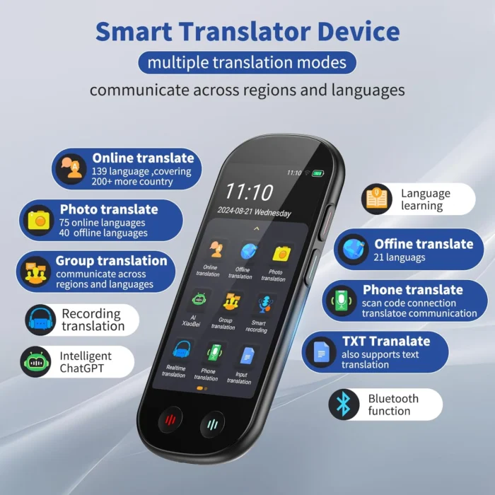 Ai Language Translator Device No WiFi Needed, Upgraded ChatGPT Translator, 150+ Languages Instant Two Way Translator Device, Offline/Recording/Photo/Voice Translatio for Business Learning