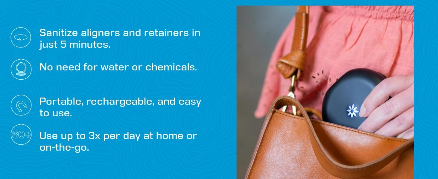 Review: I ordered this before my treatments started and I use it everytime I take out my aligners. This is a must have to sanitize when not in mouth, and I highly recommend using the cleaning crystals each morning. These two things have kept my trays sparking clean and smelling fresh!