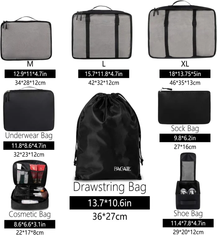 BAGAIL 8 Set Packing Cubes Luggage Packing Organizers for Travel Accessories-Jet Black