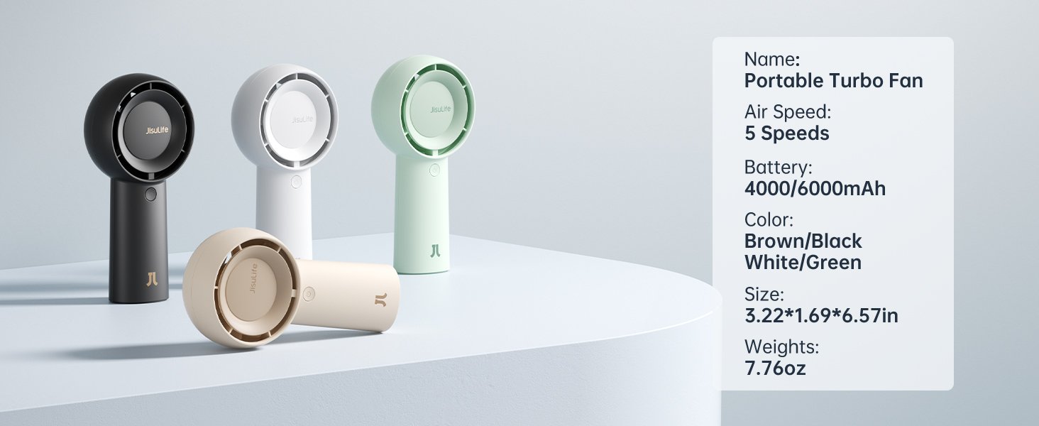JISULIFE Rechargeable Handheld Turbo Fan – Portable Compact