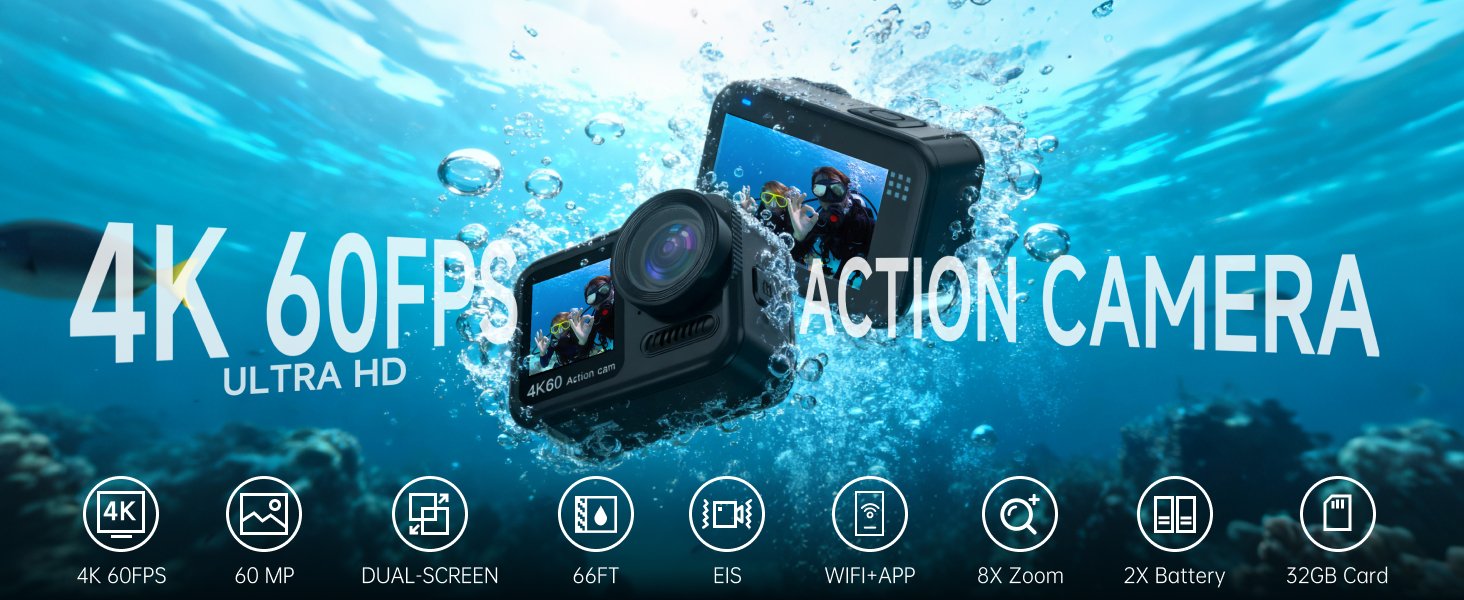 Review: This is the first action camera I’ve used and I’m impressed with the image and video quality. Very crisp, vibrant, and high resolution. It really delivers 4k and 60fps. Audio is okay but thats not why I got it. Build quality is very nice, it’s a very study metal body. It’s waterproof which is cool. Operating the menu is a bit odd due to the compact size, it’s literally smaller than my palm, but it works. I really appreciate that it included a sd card so I could start using it immediately.Including two batteries is very useful. Can charge them together with the included charger or charge one while it’s in the camera and powered off. There’s also some nice mounting options included which is great for those that are starting. The only real weak point with this camera is if you use the app. The app isn’t very intuitive and it’s UI one my S21 doesn’t conform to my screen like it should. But you really don’t need the app and I’m not using it, was just curious about it. All in all, I feel like this is a great action camera.