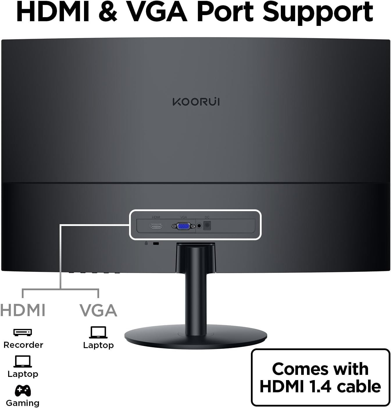 Versatile Connectivity: Equipped with HDMI and VGA ports, the KOORUI 27-inch monitor easily connects to a variety of devices including Xbox, PCs, and laptops for seamless integration into your setup.