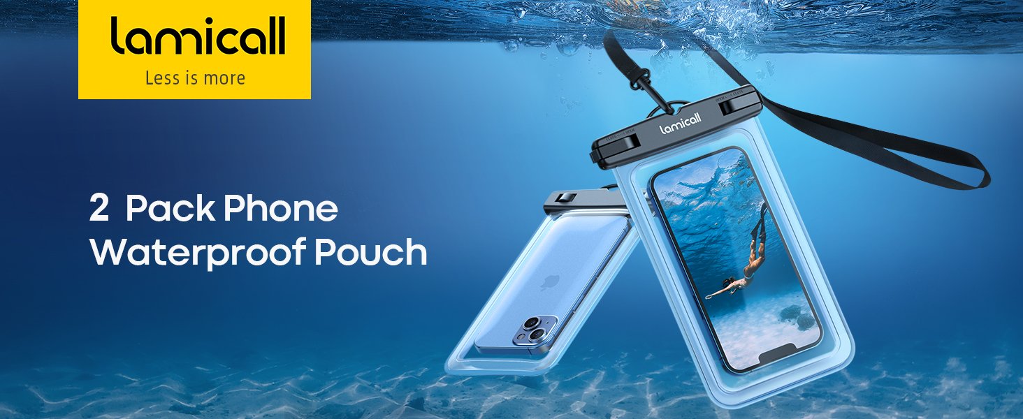 Lamicall Waterproof Phone Pouch Case – [2 Pack][Easy Lock & Heavy Duty] IPX8 Water Proof Cell Phone Dry Bag for Beach, Gift Protector for iPhone 17 16 15 14 13 12 11 Pro Max Plus Air, Galaxy S25, 4-7″