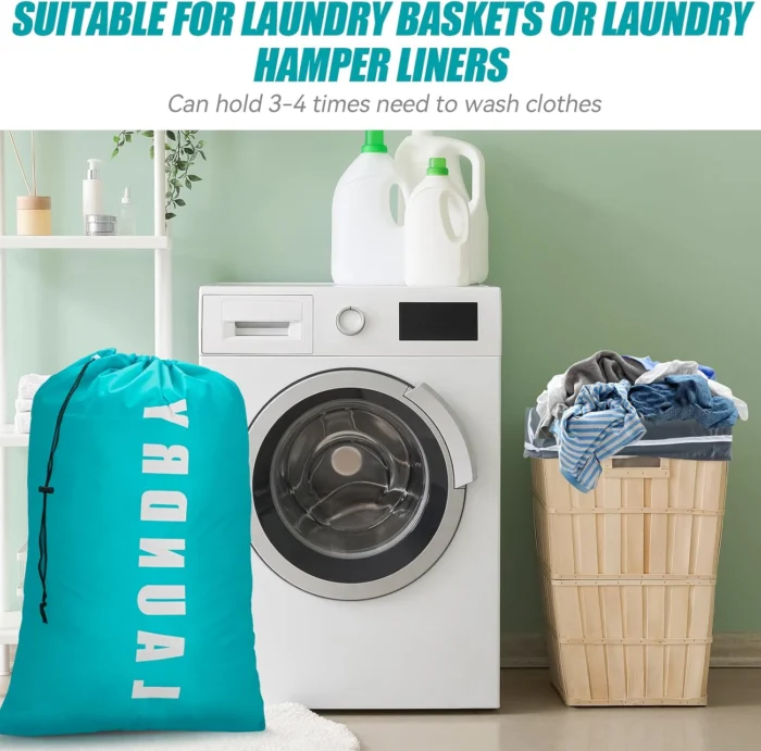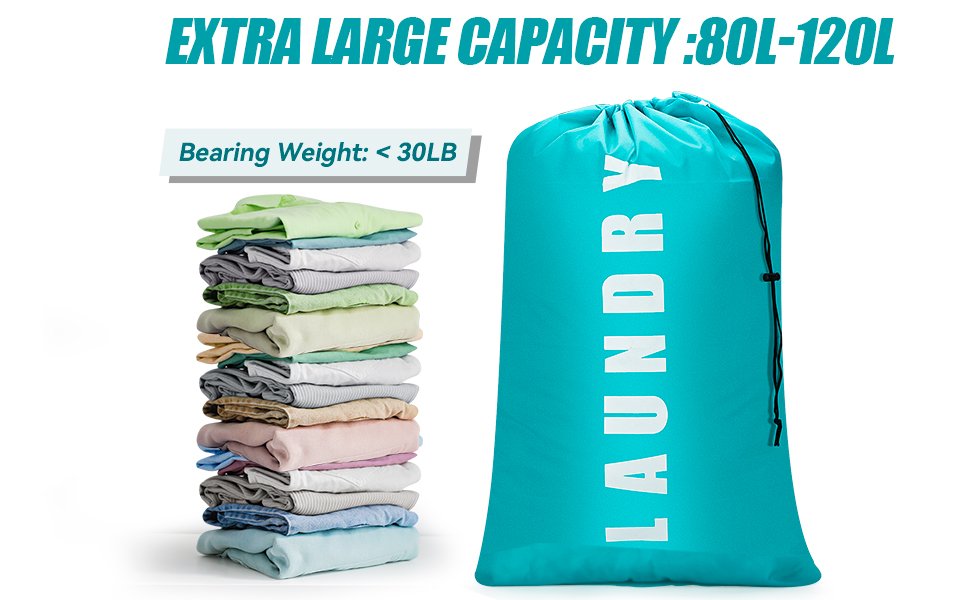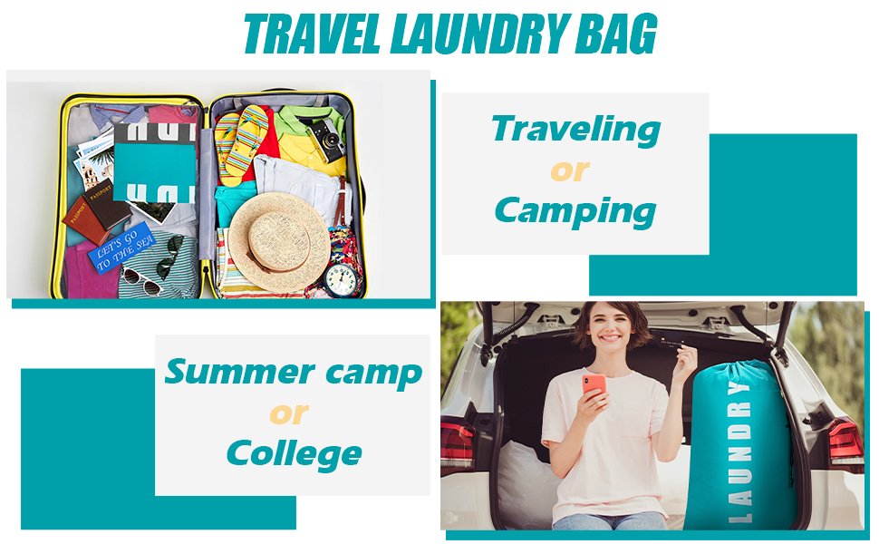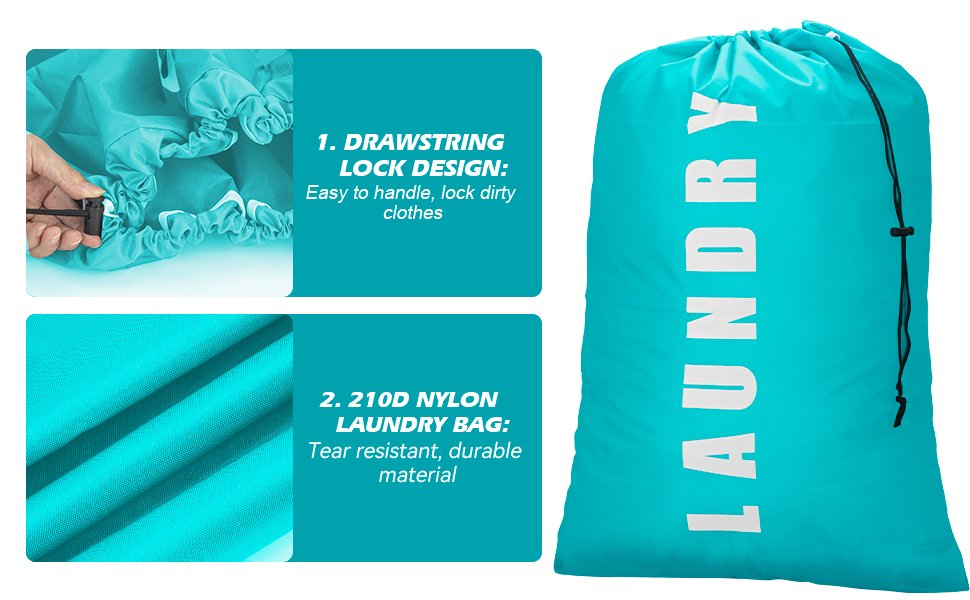 Laundry Bag,2 Pack Travel Laundry Bags for Dirty Clothes,Large Laundry Bags for Camping & Traveling,Dirty Clothes Travel Bag,24″ x 36″ (Cyan + Gray)