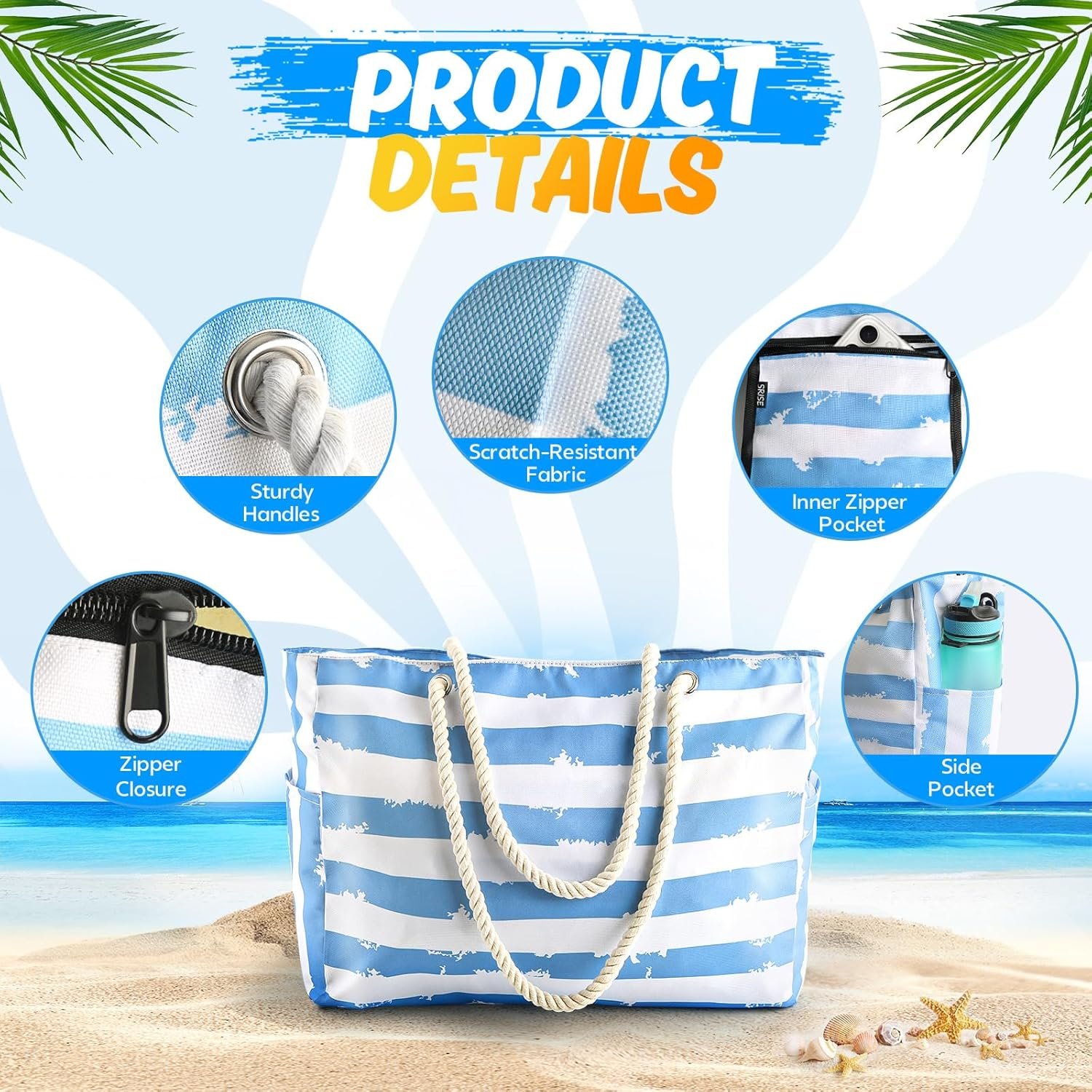 SRISE Large Beach Bag for Women & Men, Beach Bags Waterproof Sandproof, Travel Tote Bag, Swim Pool Bag for Family Outdoor