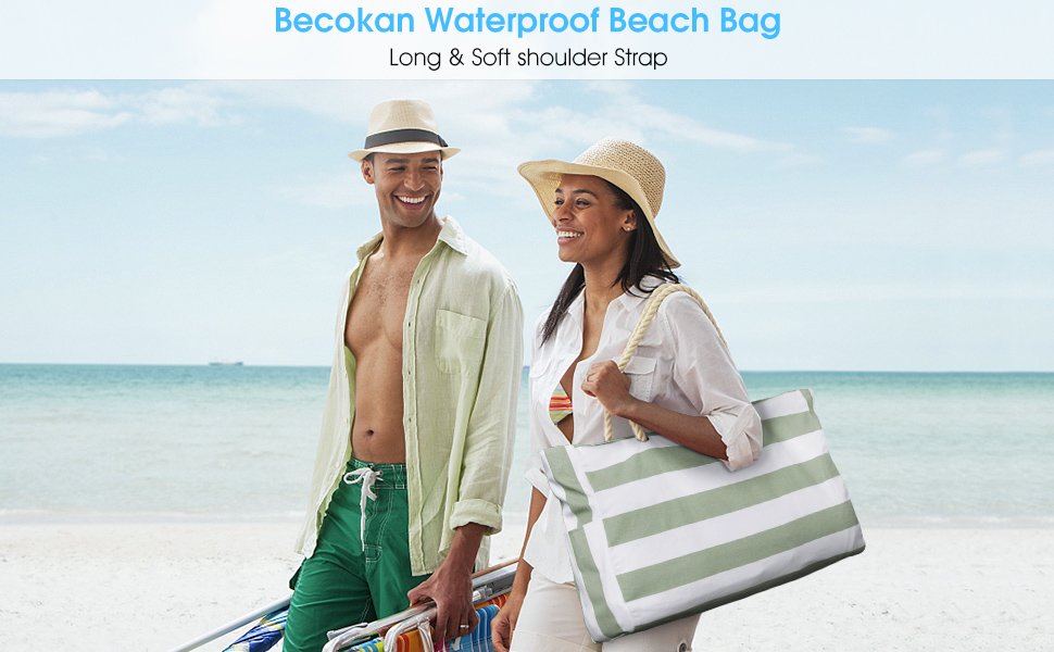 Title: Becokan Large Waterproof Beach Tote Bag – Spacious and Practical for Beach Days