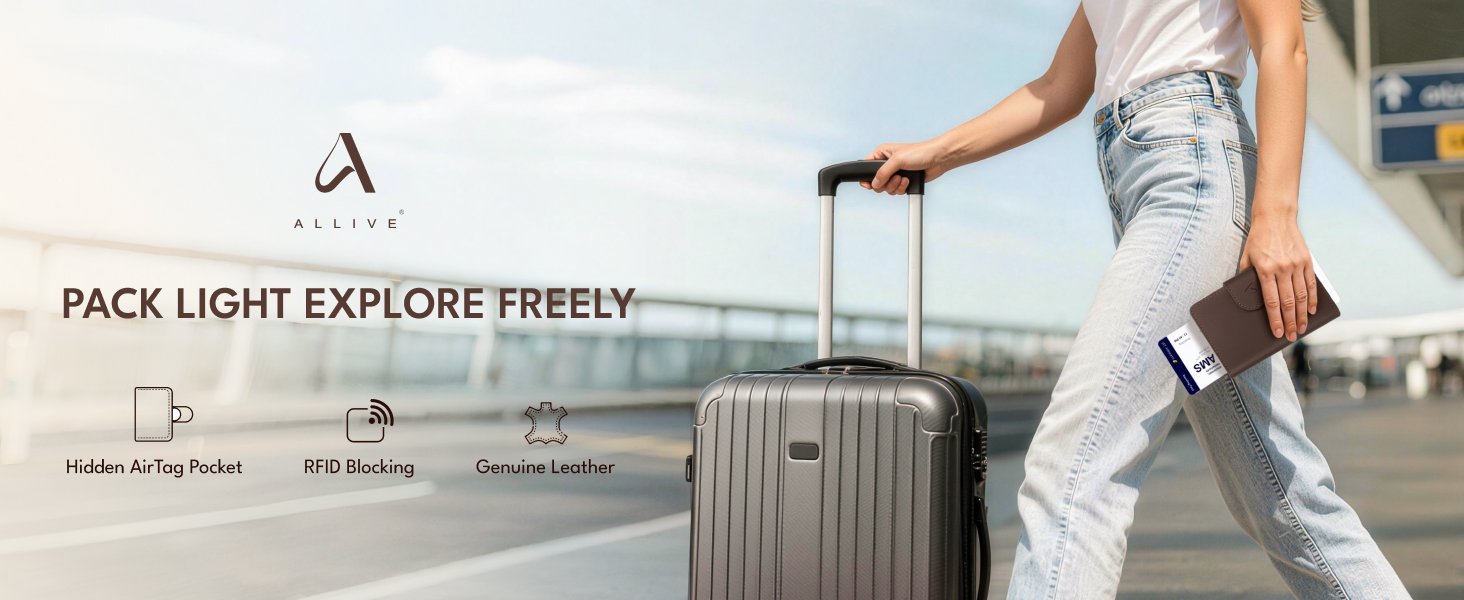 @#@ ALLIVE Passport Holder for Travel, Genuine Leather Passport Holder with AirTag Hidden Pocket, Rfid Blocking Passport Cover Travel Wallet for Women Men, Airport Essentials Gift (Black) @@@