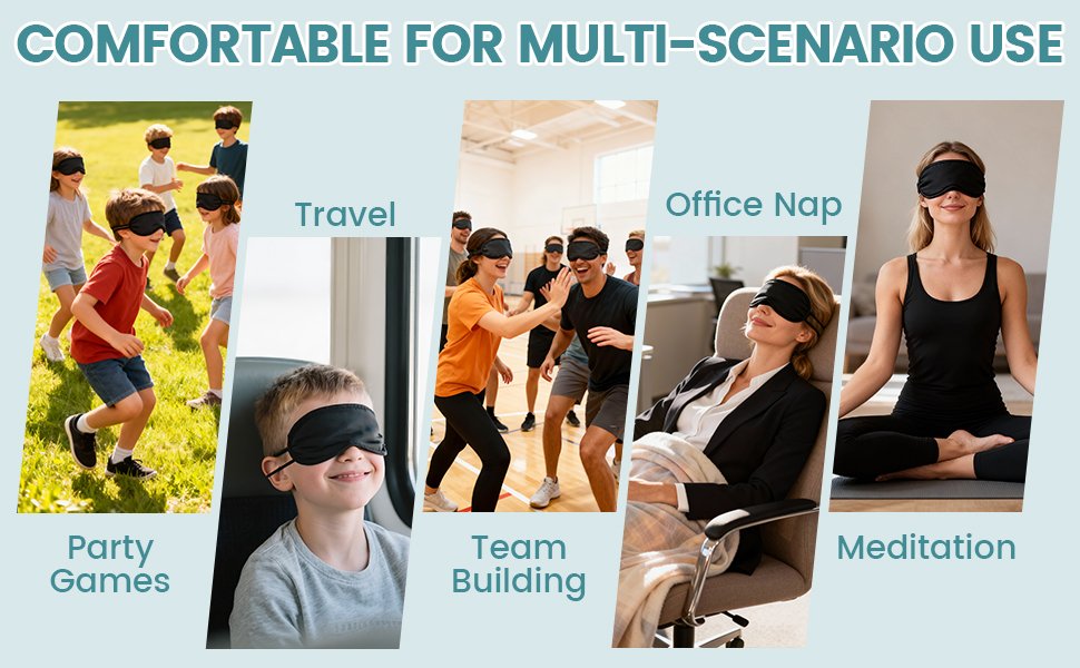 Review: These eye masks are soft and comfortable for both sleeping and party games! The nose pad blocks light well so no one can peek during games, and they’re perfect for travel naps or daily rest. Adjustable straps fit most people, and the material is lightweight but thick enough to block sight fully. A couple straps had minor wear after heavy group use, but they still work great. Super reliable for rest and fun activities—highly recommend!