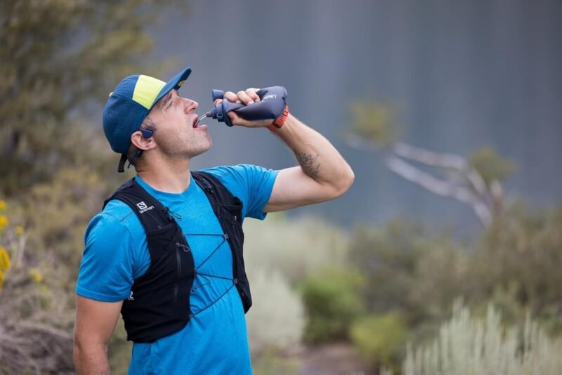 Review: Great for hiking and running. The filter works very well and allows for longer runs where clean water is not available. Easy to fill and clean. Does not leak. There’s a bit of a plastic taste from the bottle but it’s not too bad