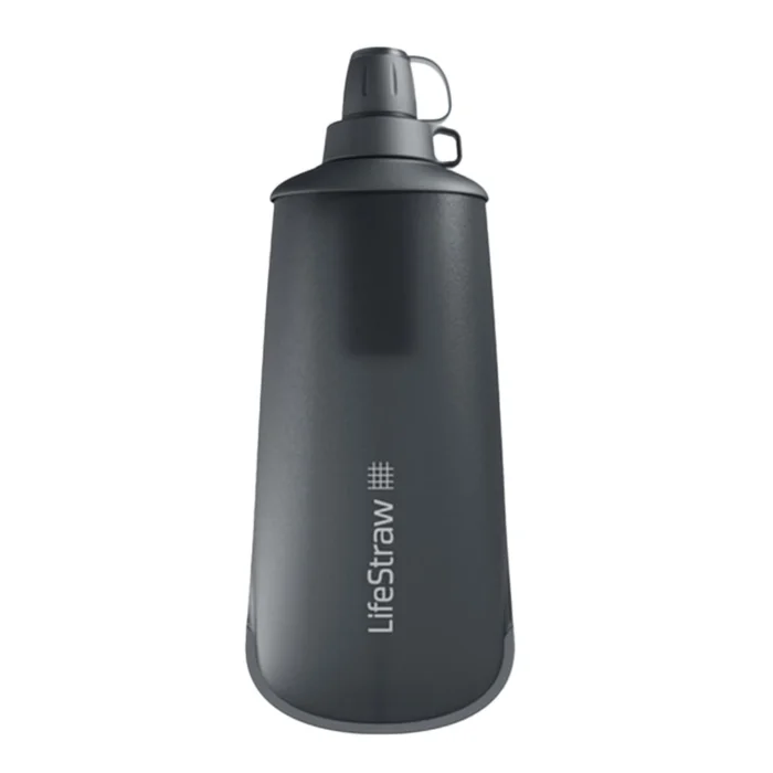 LifeStraw Peak Series – Collapsible Squeeze Bottle Water Filter System – 650ml for Trail Running, Through Hiking, Travel, Cycling, and Fishing; Dark Mountain Gray