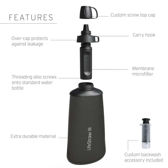 Review: I’ve never used anything like this before and I loved it! Purchased the 1L size for my June/July trip to Peru. Let me tell you that the water in Cusco had a strong smell and it ran milky white out of the tap. This filtration system removed all of that! I brushed my teeth, rinsed out refillable water bottles and cups, and washed/rinsed my invisible aligners with this. During long tours I carried it with water and there was no spillage. I loved that I could just squeeze it directly into what I needed (cup, aligners, bottles, my hands). Without squeezing there’s a nice steady flow of water that runs out of the filter which is nice.Initially the water will have like a charcoal taste, but it goes away after a couple of uses. Make sure you backwash the filter and rinse out the bag. It comes with the backwash syringe and it’s easy to use.Hint for removing the filter without it dropping: The top part of the bag is a stiff plastic, hold onto that when removing/twisting the cap for removal. DO NOT hold onto filter inside the bag while you twist off the cap for removal.