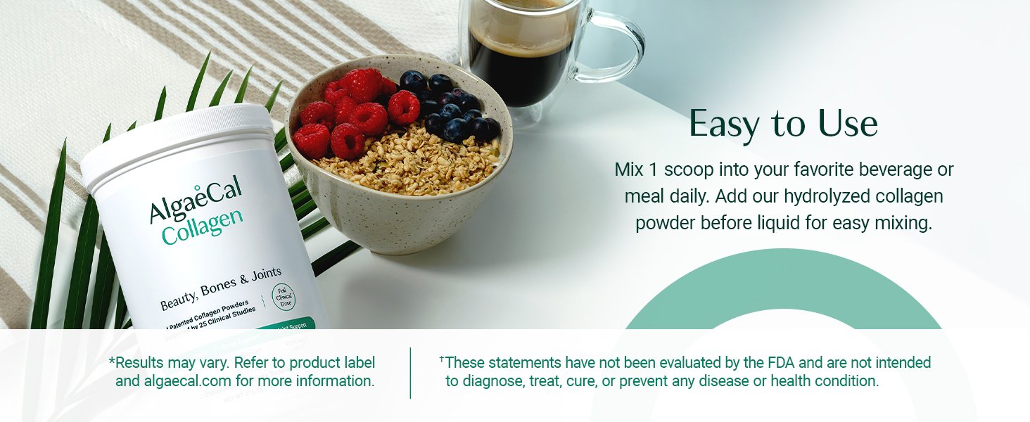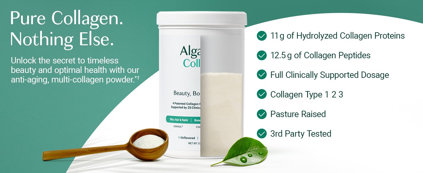 Review: I’ve tried various forms and brands of collagen supplements. AlgaeCal is the only one that hasn’t caused me to become constipated. I’ve been taking a scoop daily for approx 6 months. It dissolves well in my coffee, hot or cold and it’s tasteless which is great. A year ago my DEXA score was -3.5 lumbar and-3.2/3.3 hips. I am waiting to see the results of a BMD scan I had a couple of days ago to see if my score improved since taking this collagen product. I thought it would help to thicken my hair and nails but it hasn’t. If however my bone mineral density is improved that would be amazing and I’ll update my review and give it 5 stars.
