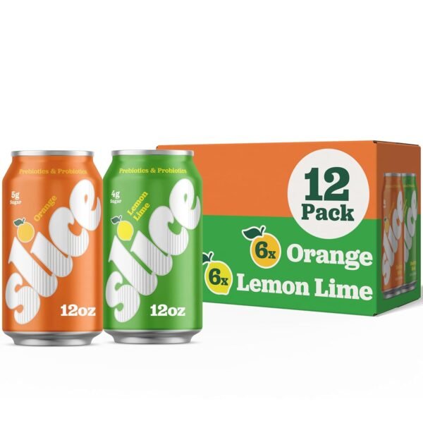 Slice Healthy Soda, Lemon Lime & Orange Variety Pack, Prebiotic & Probiotic Soda Pop, 5g Fiber, 35-40 calories, 12 fl oz 12 Pack (6 of each flavor)