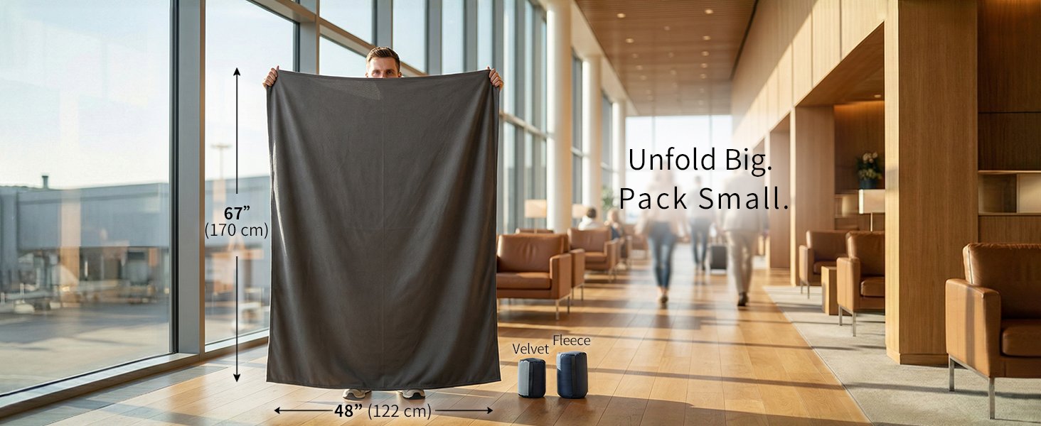 Litume Travel Blanket Lightweight and Breathable, 67 x 48 in Soft Airplane Flight Blanket for Travelers, Foldable Camping Sheet with Stuff Sack for Train, Camp, backpacking, office, home (Velvet E650)