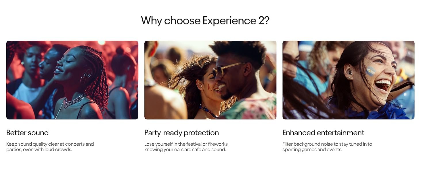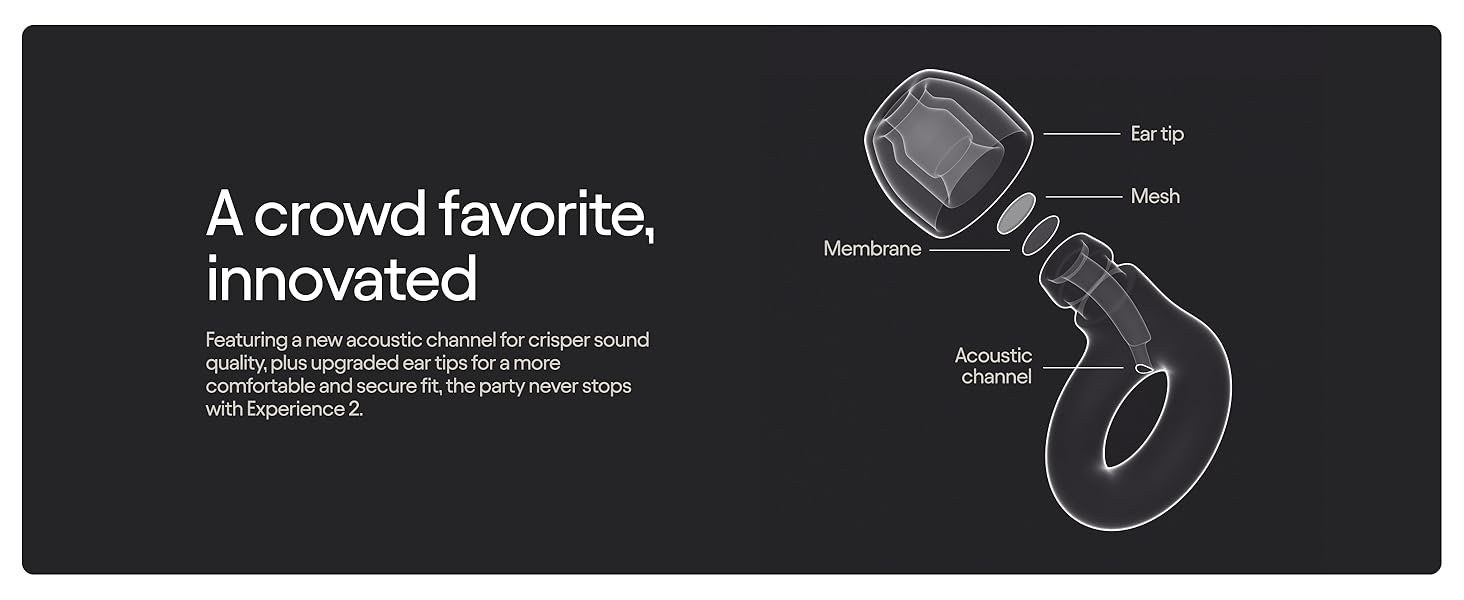 LESS NOISE, CRISPER SOUND – Enjoy the moment at your volume with Experience 2 earplugs. Designed with live events in mind, Experience 2 earplugs lower the volume without compromising sound quality, ensuring a crisp, clear listening experience at concerts, festivals, sporting events and beyond.
