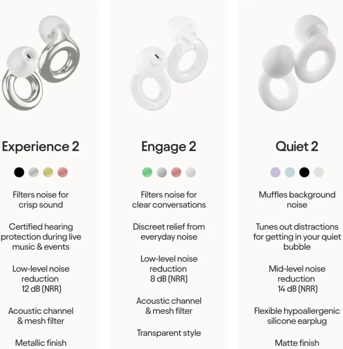 Review: Loops are THE BEST! I purchased experience 1 when they first came out but the case doesn’t hold them like the experience 2 does so one of them fell out while I was at a festival and I lost it so I replaced them with experience 2. This case has a cut out where they fit perfectly so you can tip it upside down and they won’t fall out. Stylish, look like earrings, and effectively block the sound without it taking away from the quality of the music. I can enjoy the music comfortably without it hurting my ears. I used to get ear ringing sometimes from poor quality sound systems at events but it hasn’t happened since I started using these, I take them anywhere I go!