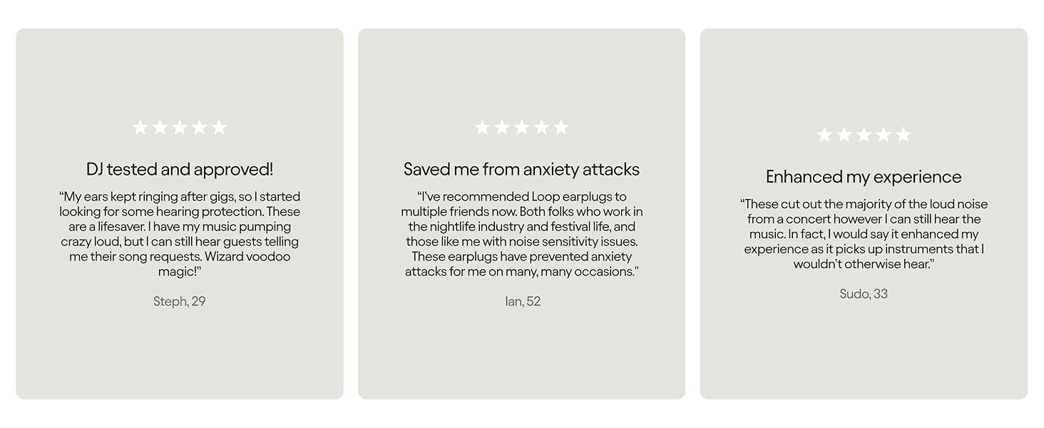 Review: Ich nutze die Loop Experience 2 Plus bei Konzerten und Festivals und bin absolut überzeugt. Die Ohrstöpsel sitzen sicher und angenehm im Ohr, selbst über mehrere Stunden hinweg. Sie reduzieren unangenehm hohe Lautstärken zuverlässig, ohne den Klang zu verfälschen – Musik und Gespräche bleiben klar verständlich.Die Verarbeitungsqualität ist durchweg hochwertig, das Material wirkt langlebig und lässt sich einfach reinigen. Dank der austauschbaren Größen und Komponenten lässt sich die Passform individuell anpassen. Besonders positiv: Die neue Aufbewahrungshülle hält die Ohrstöpsel deutlich sicherer – ein klarer Fortschritt zur vorherigen Version.Ein durchdachtes Produkt für alle, die ihr Gehör schützen möchten, ohne auf Soundqualität zu verzichten.