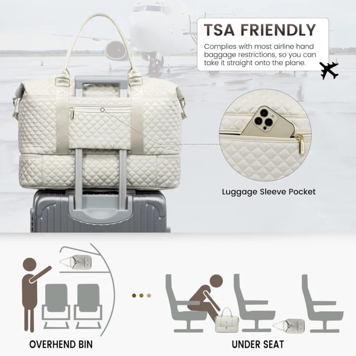 Review: I absolutely love this duffle bag. It has so much room without feeling oversized, and the compartments make it easy to stay organized. I was able to fit clothes, shoes, toiletries, and still had space left over.The material feels sturdy and well made, and the straps are comfortable even when the bag is full. It looks stylish but is also very practical. Perfect for weekend trips or as a carry on. I am very happy with this purchase.