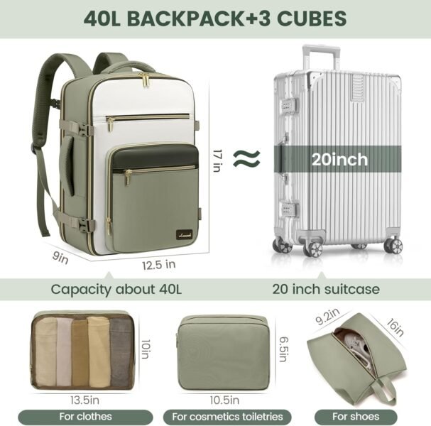 LOVEVOOK Travel Backpack For Women,40L Carry On Backpack Flight Approved,TSA Personal Item Travel Bag Fits 17 Inch Laptop,Business Weekender Overnight Daypack with Back Pad and Chest Buckle,Cubes