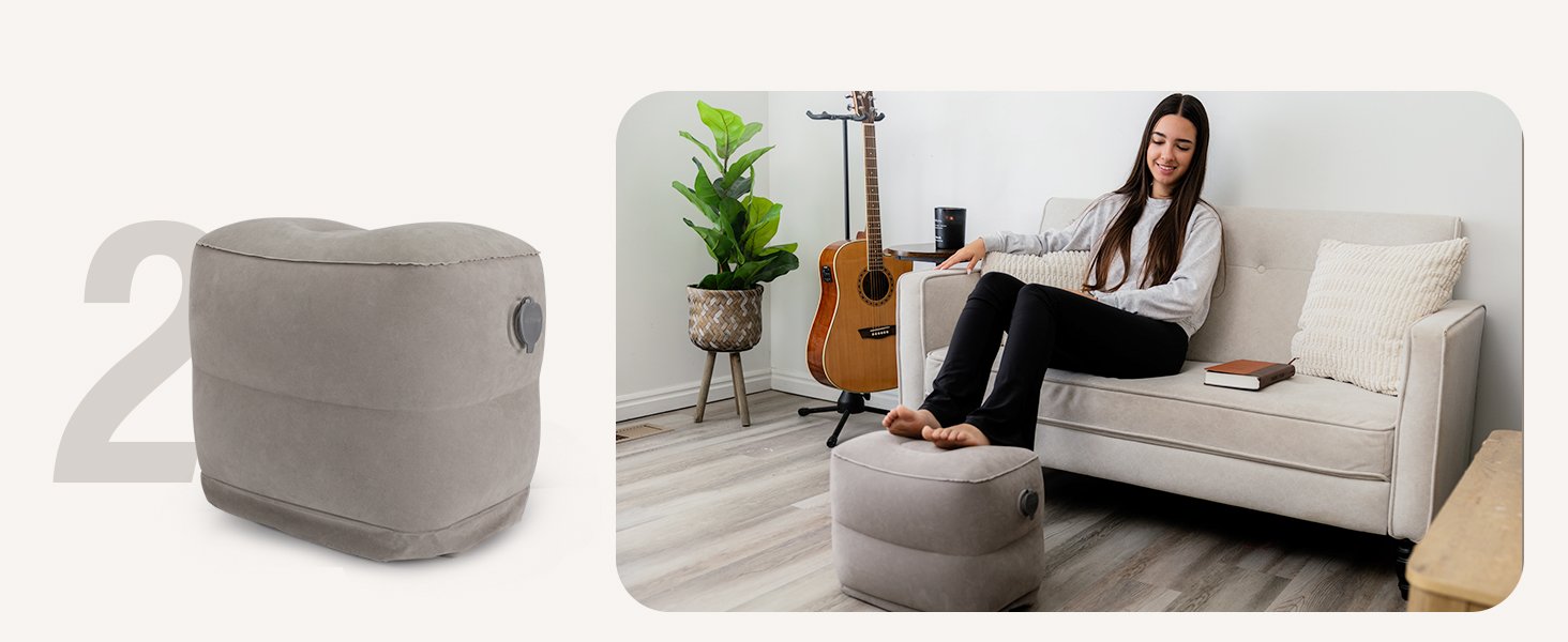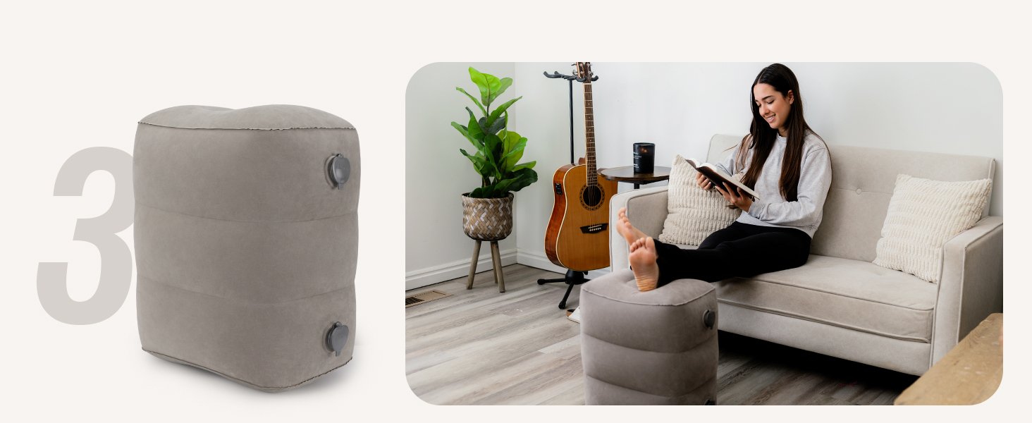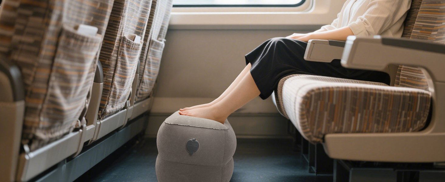 Maliton Inflatable Foot Rest Pillow for Travel,Kids Airplane Bed,Adjustable 3 Layers Height Leg Pillow of Air Travel Essentials,Car, Office, Home – Fast Inflation (Grey)