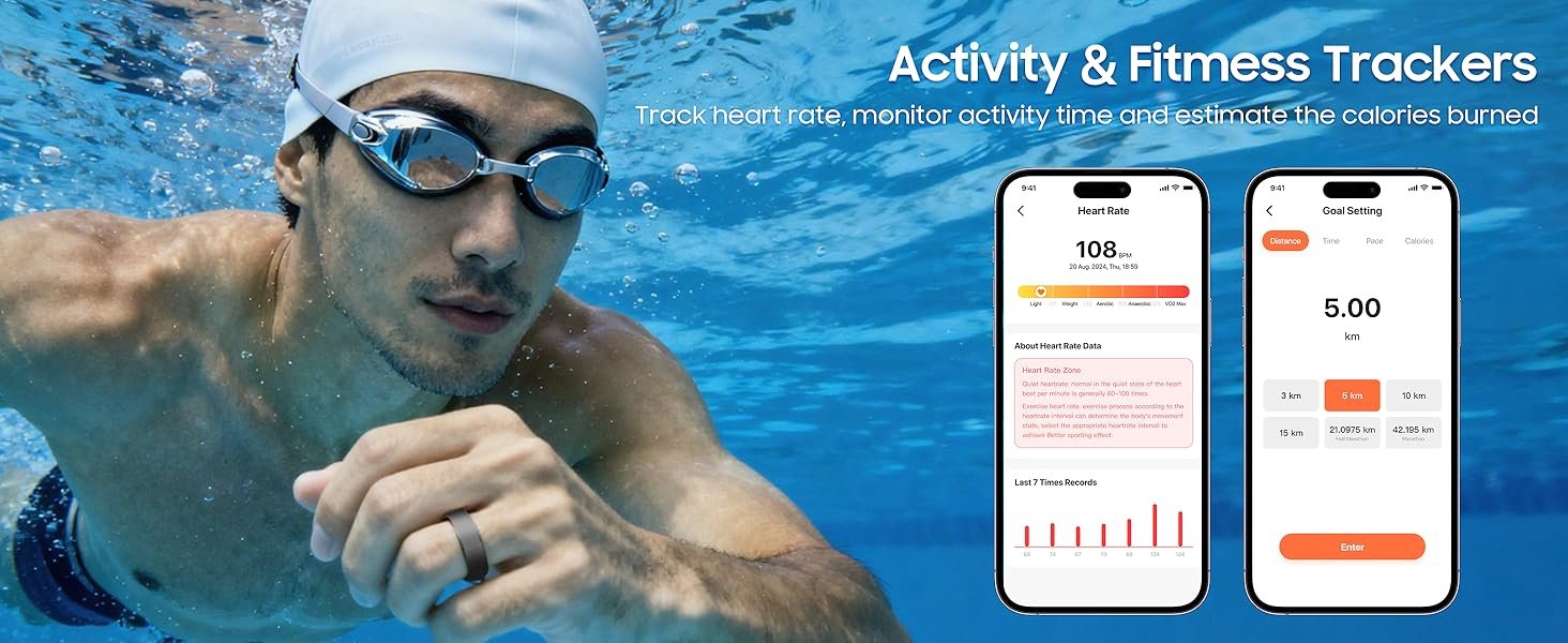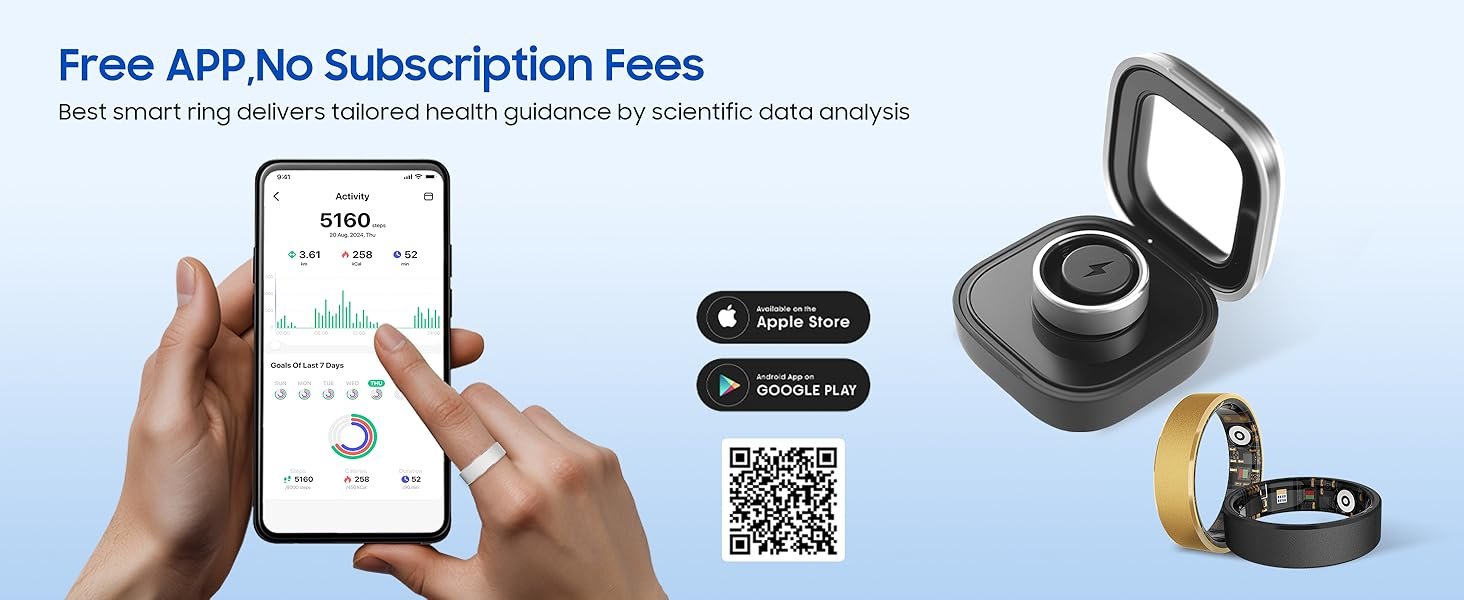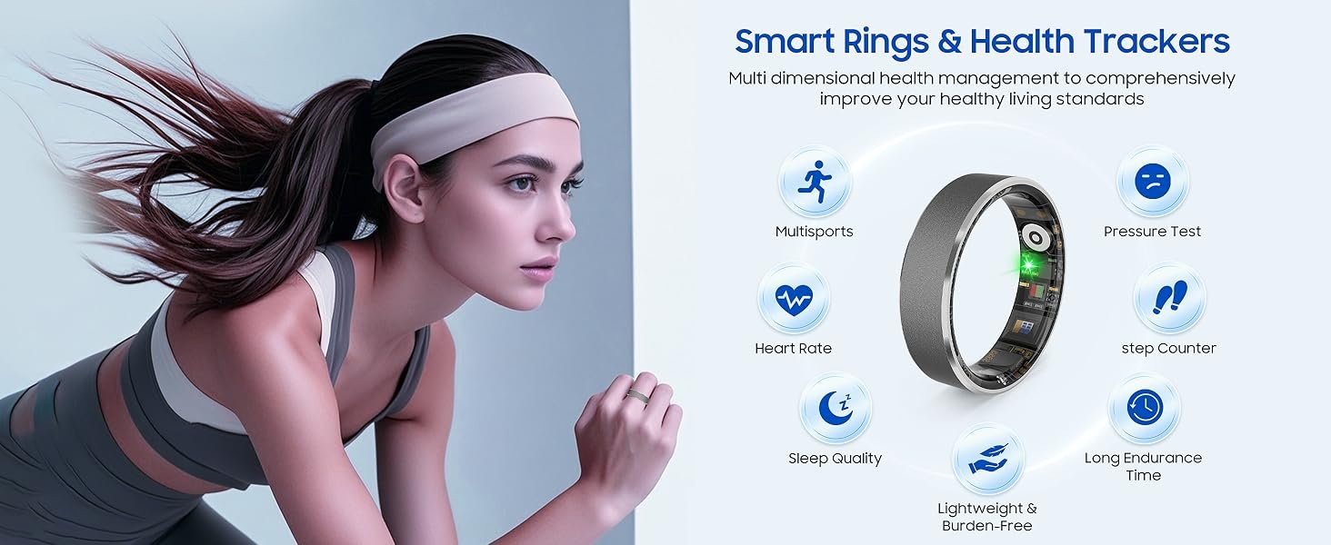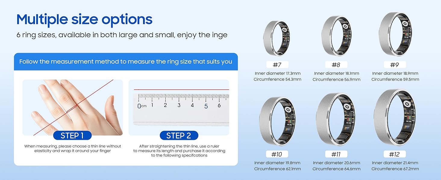 Smart Health Ring, Featuring Stress and Sleep Monitoring Functions, Compatible with iOS and Android,Waterproof Fitness Tracker for Women & Men, No Subscription Fee. (Silver, 8)