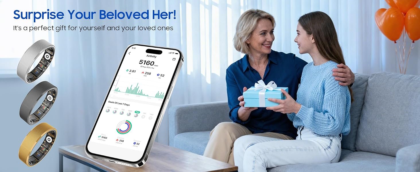 Smart Health Ring, Featuring Stress and Sleep Monitoring Functions, Compatible with iOS and Android,Waterproof Fitness Tracker for Women & Men, No Subscription Fee.(Rose Gold, 10)