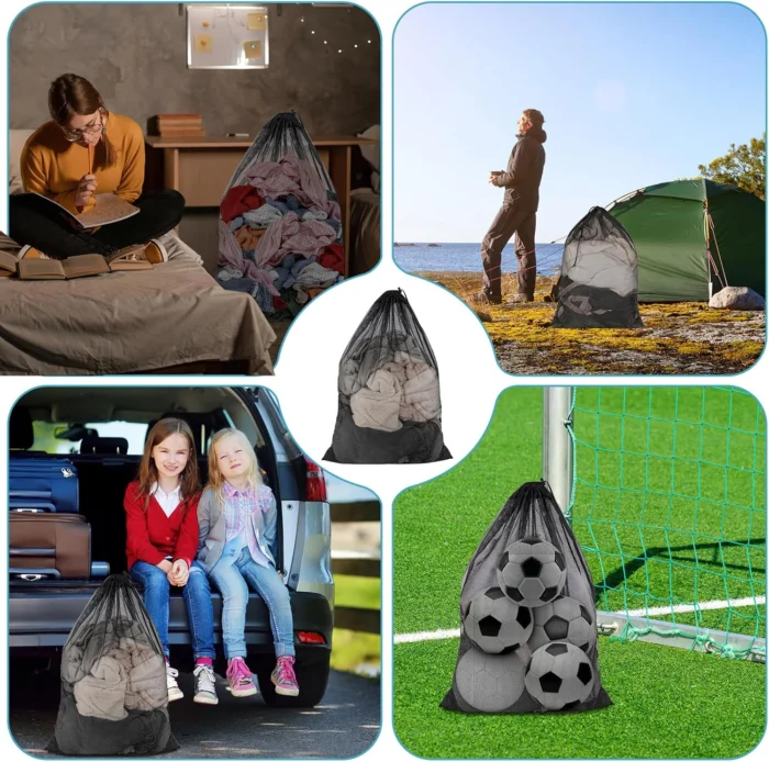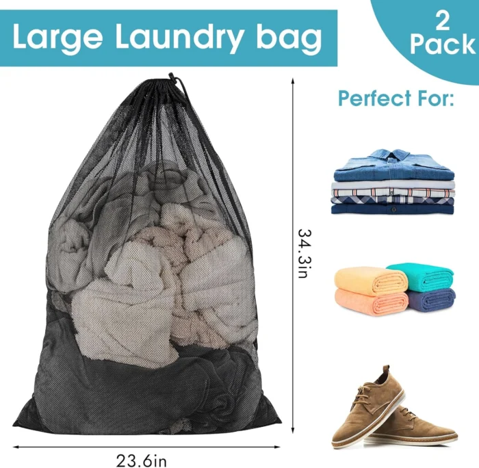 2 Pack Mesh Laundry Bags, 23 x 34 Inches Heavy Duty Mesh Laundry Bag, Large Laundry Drawstring Bag for College, Dorm, Travel, Family and Apartment Dwellers, Black