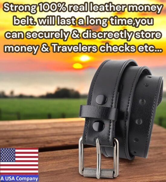 Review: On delivery, the belt is of VERY poor quality leather that has DRIED CRACKS in the inside lining against the waist; more cracks are definitely expected to develop in a short time.The zipper was extremely difficult to get started, but seems better with use. The zipper pull tab should fold inside the zipper construction seams so that it’s flush with the belt and out of the way so that it doesn’t catch on clothing or poke the body. The pull tab is entirely exposed and hangs there as a nuisance, longer than the belt width, exposing it by about 3/32″, making it so that the money belt really isn’t that much of a secret. Consequently, so that it cannot be seen, I cut the end off the pull tab and filed it smooth. That said, the pull tab connection to the zipper itself seems thin and frail enough to break, meaning that it might one day be necessary to use pliers to get to my money or actually cut the belt to do it.And, THE MONEY POCKET IS SO NARROW THAT IT TOOK ABOUT 20 MINUTES OF REAL EFFORT WITH A TABLE KNIFE TO GET THE MONEY INTO IT (God help me if an emergency arises and I have to get it OUT).Also, the appearance of the stitching causes me to wonder how long the overall belt itself will last. And the buckle doesn’t fit right when the belt is worn, but it does succeed in holding up my pants (at least).WHAT A 90% WORTHLESS PIECE OF JUNK!The belt cost less than $20.00, so I’ll keep it and use it until I can find another that’s up to genuine realistic standards as a money belt and is made with genuine quality materials, design, construction and craftsmanship. C’est la vie…