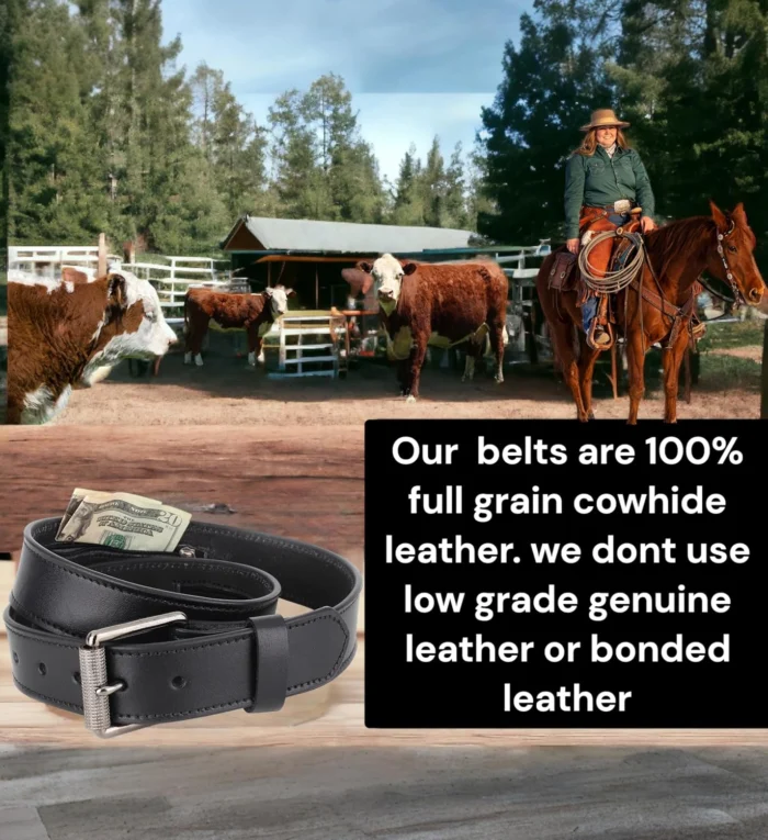 F&L CLASSIC Men’s Money Full Grain leather Belt, Hidden zipper Pocket, USA