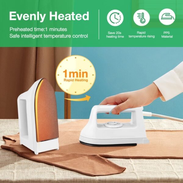 Reviewer: tanialezcano Rating: 5.0 out of 5 stars Title: Perfect Mini Iron for Crafting and Quilting Projects! Review: The Mini Iron for Crafts and Quilting has been a fantastic addition to my crafting toolkit. This little iron is incredibly handy for detailed work, making it ideal for quilting, applique, and other small fabric projects.Its compact size allows for precision, especially when working on intricate designs or tight corners. The iron heats up quickly and maintains a consistent temperature, which is perfect for pressing seams and small fabric pieces with ease.I love how lightweight and easy to handle it is. The ergonomic design ensures that even prolonged use doesn’t cause any discomfort. It’s also compact enough to take along to quilting classes or crafting meet-ups, which is a huge plus.Overall, the Mini Iron is a must-have for any quilter or crafter looking for a reliable and efficient tool. It’s small, powerful, and makes detailed work so much easier. Highly recommend! Reviewer: odessa Rating: 5.0 out of 5 stars Title: Great little iron for securing veneer edge banding Review: I recently built a drawer with plywood and needed an iron to glue the edge banding.For reasons that I cannot fathom, my spouse declined my request to take her fancy-dancy steam iron out to the garage and expose it to my ironing skills and the dangers of my work area.I bought this simple device and it worked perfectly for my use.Heats up quickly, uniform temperature. The control dial is a bit difficult to adjust with my large hand, but for me it was set once and never touch it again.Not fancy, but inexpensive and reliable, easy to use. No worry about leakage or steam inadvertently damaging the project. Reviewer: Michael Smith Rating: 4.0 out of 5 stars Title: Nice little iron…Cord is too short Review: I got this so I could have an iron in my room so I could remove wrinkles from sheets, shirts, and slacks. I find it works very well for what I need, I just wish it had a longer cord. Reviewer: Amazon Customer Rating: 5.0 out of 5 stars Title: Cute and functional Review: Very cute but not super tiny, and works very well, heats up fast. Really like it! Reviewer: Rose M. Rating: 5.0 out of 5 stars Title: Great little iron Review: Great little iron. Worked great for my project. Quickly heated up, easy to use. Even used it for some quick clothing ironing and it worked great! Reviewer: Kathleen M. Rating: 3.0 out of 5 stars Title: Doesn’t heat up enough Review: Does not heat up well.Disappointed. Reviewer: Georgia Rating: 5.0 out of 5 stars Title: small and light Review: Great, nice for my small hands, like how light it is Reviewer: Tiffany Rating: 5.0 out of 5 stars Title: Fast heating little iron =) Review: The mini Iron works perfectly out of the box.It heats up super quickly . Very happy with the purchase and worth the money. I do recommend this product for sure!!