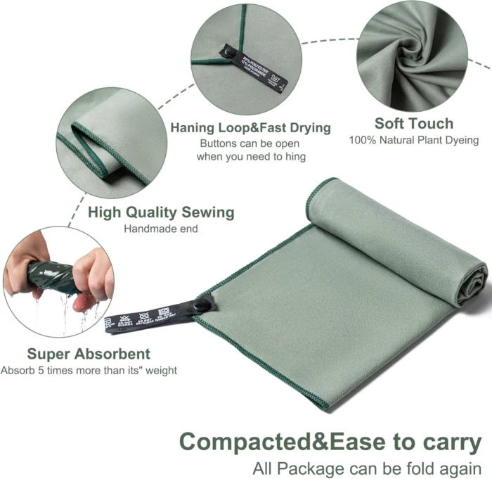 Camping Towel,2 Pack Microfiber Travel Sports Towel,Quick Dry – Super Absorbent – Ultra Compact -Ultra Soft – Lightweight.Suitable for Gym,Yoga,Trip,Beach, Shower, Backpacking,Pool(Army Green)