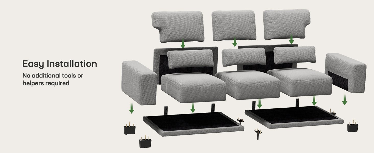 Review: DO NOT BUY THE COUCH!The good reviews are for a different product. The sofa itself is terrible. Flimsy and thin cushions, the side wall does not sit flush, bottom cushions are different heights, entire thing looks cheap.
