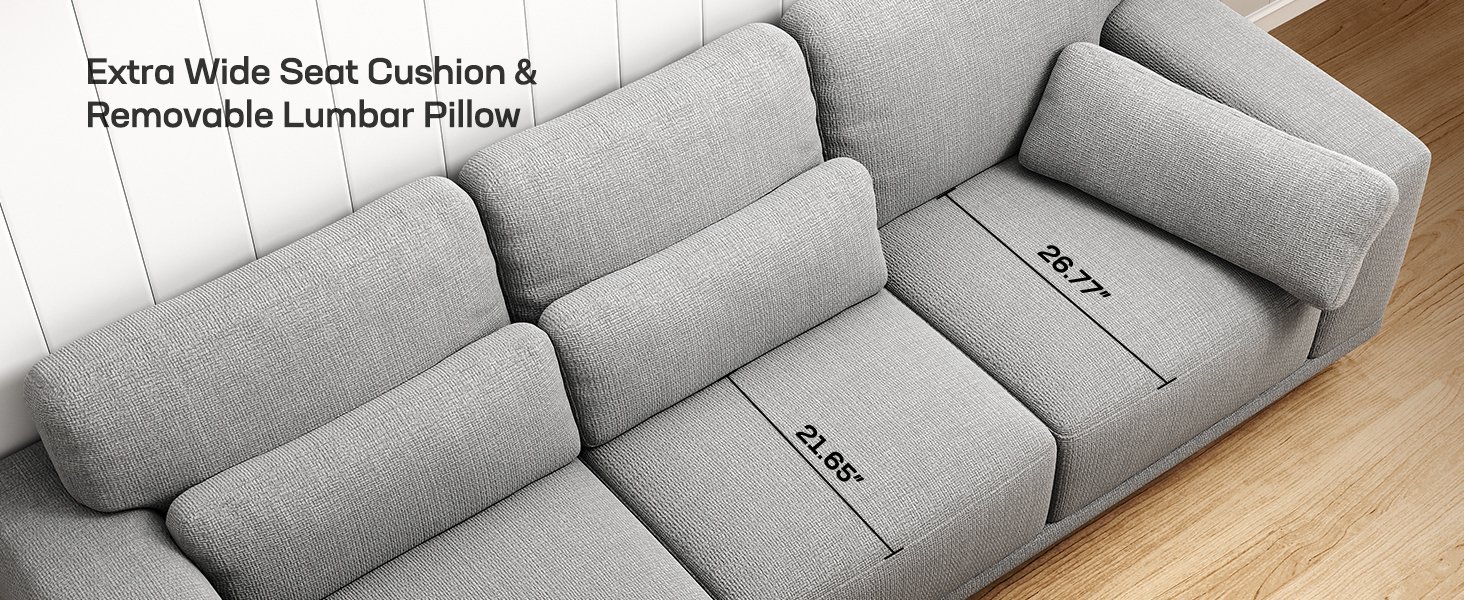 Marsail 89” Sofa, 3-Seater Modern Upholstered Couch with Deep Seats, Comfy Linen Couches for Living Room, Bedroom, Office, Apartment, Grey
