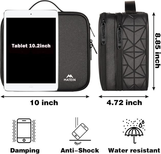 Reviewer: Sarah Rating: 5.0 out of 5 stars Title: Flexible and Big Review: With all the different devices that have various chargers, cords, or plug-ins, this is perfect to hold the duplicates, back-ups, or travel items and still keep everything organized.The compartments are flexible, sturdy, and multifunctional, so it is simple to keep things organized, easy to find specific items, and avoid devices with missing mystery cords/chargers. It also makes packing for vacation a lot more streamlined. The quality is great (zippers, case, and Velcro inserts) so everything stays in place, even when moving the case around.So much better than trying to stuff everything in a shoebox and then trying to untangle a mess later when you can’t remember if you even have what you need.Definitely recommend! Reviewer: A Reviewer Rating: 5.0 out of 5 stars Title: Portable Soldering and Electronics Repair Kit Review: I’m using this as a portable Soldering and Electronics Repair Kit. I do soldering work in the garage mostly, but sometimes I appreciate doing so at my desk in the house. And moving all the necessary gear from place to place is a pain. The pain is multiplied if you need to take all your gear on the road to fix something for a friend or relative. This case solved my problems. It is well made, lots of potions for organized storage, and I was able to visualize how I would use this. It took qute a bit of time to find the perfect case that had proper dimensions and storage and am so glad I found this one, as it is perfect.The soldering stand fits nicely in the left compartment, the right compartment has a power tool battery rig, the front compartment has tweezers, helping hands, flush cutters, etc. The top compartment (unpictured) has the Pinecil iron, a component tester, and a small multimeter. If interested, the stand is made of metal, Amazon product numbet B0D8TGM33S, and I modified it to accept the Pinecil (see review there for details). I so wish I had this rig 30 years ago, when I did much more electronics repair on the road.In terms of price, I was thinking that $24 is a bit much for a case. But the quality and options for storage makes it worthwhile. I recall spending a lot more on some cases that are not nearly as versatile and with comparable quality. So after having it in my hands and recalling prior purchases, I’ve come to accept that this is actually a pretty good value despite my initial sticker shock. Reviewer: Cunningham1420 Rating: 5.0 out of 5 stars Title: Awesome RC Car Charger Storage Etc… Review: Great electronics and cord Organizer Bag. Heavy-duty and well made to take abuse indoors and outdoors. I have medium and large for my 1/8 scale rc e-buggys and their great for storing all my charge cables, esc & servo programmers, battery discharger, charger, dc power supply, balance boards, testers, 10 different kinds of charge cables and plugs. For the price the medium size is well worth it vs the large, but I did need the larger large size. Reviewer: John Rating: 4.0 out of 5 stars Title: Too small Review: It’s a little smaller than envisioned, I should have looked closer at the dimensions. It could also use a carrying strap. Good quality. The spaces in the lower compartment are nice to be able to customize pockets. However, you cannot place small item in there, they may not stay in that compartment. Reviewer: federalgirl Rating: 5.0 out of 5 stars Title: Just right! Review: I’ve ordered several of the smaller sized cases for technical cords, batteries, wires, etc. to organize & keep in one place. However, they were always too small, or not enough room for certain things, or organization off. I decided to purchase this case to have everything in one place, & hopefully organized better. Well, I hit the jackpot! It has some much room, & is designed for everything technically! It allows you to store & adjust the space, for every bit of i watch, cellphone, rechargeable, cords, batteries, laptop, computer cords, etc. you have, in one easy to carry & locate case! I just love it Reviewer: Chris Alexander Rating: 5.0 out of 5 stars Title: Just what I needed. Review: Amazing case. Works great for my headphone cables and portable dac/amps. Plenty of storage space. Reviewer: Daniel Morales Rating: 5.0 out of 5 stars Title: Those who want organization, I recommend Review: So I am currently studying to be an electrical engineer and I needed someplace to put all of my components. There are quite a lot of components and I love to be organized. The top compartment was used for all my different resistors. I had extra place to organize my push buttons and different LED colors. The middle compartment has my other components such as capacitors, small motors, op-amps with lots of space for other things. The bottom part has lots of protection so I have my expensive hardware like small oscilliscope and microprocessor. I had to make sure that it was durable and could take hits since it protects expensive components while being waterproof to make sure something doesn’t short. Another detail I like is the color and material of the bag. It is made of that material that makes that distinct satisfying sound when you scratch it. I needed it to be big enough to fit everything while being small enough to be put away and more lightweight. I feel satisfied knowing that wherever I carry my bag, all my components are organized and safe. Reviewer: Larryg Rating: 5.0 out of 5 stars Title: Best bag by far ! Review: This is an excellent sized bag for a lot of gear. I have purchased other bags and although I still use those bags, I like the Matein bag best. Its semi-hard sided with lots of small compartments for adapters, etc. A little more cost, but well worth it in my opinion. Reviewer: Ribellu1567 Rating: 5.0 out of 5 stars Title: Review: Super il est assez grand et utile pour mettre de nombreux petits accessoires…Je le recommande…Il ne prend pas beaucoup de place… Reviewer: Rafał Niewiadomski Rating: 5.