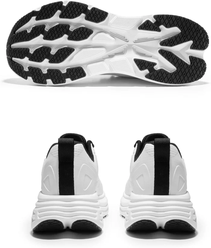 Review: I was looking for a cushioned shoe for walking up and down steep asphalt hills, read the reviews on these and multiple other brands. Several people had recommended a couple other brands they loved but the price was crazy. And I know sometimes the price is worth it, but after reading the reviews on these I went for them. So glad I did, I have a wider foot but ordered just a standard size 9, they fit perfectly. True test was walking in them, I walked two miles a day, five days last week and I didn’t experience any break in time at all. No rubbing on back of heel, no tightness on foot and the arch support fit nicely. The cushion support flexing when walking up hill and then again on downhill descent was terrific, no ache in feet at all. I feel like I walk flat footed, these helped me walk better. The price is the best part for the comfort of these shoes.