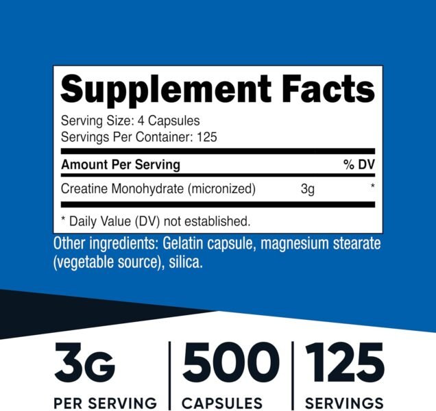 Review: This is hands-down one of the most convenient and effective creatine supplements I’ve used. No mess, no taste—just results.💊 Micronized Capsules for Easy DosingEach capsule contains 750mg of micronized creatine monohydrate. As shown in the product description on page 1, the bottle contains 500 capsules, delivering 125 servings—perfect for long-term use without restocking constantly. No measuring powder, no shaker bottle residue.🧴 No Taste, No Texture HassleThe capsule format is a game-changer for anyone tired of gritty shakes or unflavored powders that ruin drinks. It’s completely tasteless and doesn’t cause bloating or stomach discomfort, which is echoed in customer reviews on page 5.💪 Third-Party Tested and GMP CompliantAccording to the image panel on page 2, the product is made in a GMP-compliant facility and is third-party tested. That gives me peace of mind about quality and purity—especially when taking it daily.✅ Pros:750mg of micronized creatine per capsule500-count bottle offers long-term valueNo taste or gritty residueEasy to use and travel withThird-party tested for safety❌ Cons:You need to take 3–4 capsules per serving to hit the 3–5g daily dose, but it’s a fair trade for the convenienceOverall:This Nutricost creatine hits the sweet spot of value, purity, and convenience. It’s ideal for athletes, lifters, or anyone focused on strength and performance. Highly recommend for anyone who prefers capsules over powder.