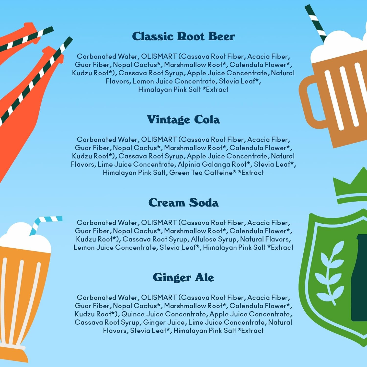 Carbonation is moderate and smooth rather than sharp. Flavors are balanced and not syrupy, which makes it easy to drink with food or as an afternoon option.Cola style flavors are the closest to a traditional soda experience. Fruit based options read more like a lightly sparkling botanical drink. Preference will vary, but quality is consistent across flavors.Ingredients and formulation