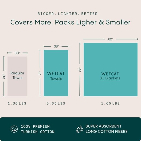 Review: I looked at many different Turkish towels before ordering this WETCAT towel. We have a pool in our backyard, and I wanted a lightweight towel to sit on in an Adirondack chair that would have 3 qualities: quick drying, absorbent, and soft. Many of the reviews I read of other towels indicated that the towel had two of my three qualities, but failed on the third. I’m happy to say that this towel meets all 3 of my requirements.Know, though, before you buy this product, that a Turkish towel is different from a traditional terrycloth or terry-velour beach towel. It’s thin woven cotton. This towel is thicker than a bedsheet or a button-down shirt, but thinner than denim/chambray.Despite being thin, this towel is fairly absorbent. Is it as absorbent as a 20 year old towel that’s been laundered hundreds of times? No. But it is far more effective at removing water droplets from your skin than many cheap beach towels I’ve bought over the years. The cotton is soft, and it’s comfortable to sit on if you are not looking for something plushy. For instance, if you normally fold your terrycloth beach towel and sit on it in a beach chair as though it’s a cushion, this is not the towel for you. If, like me, you primarily throw a towel on your chair to keep your sweaty skin from sticking to the chair, then this towel works well.Finally, this towel dries MUCH quicker than a terrycloth beach towel. I spend a lot of time reading by the pool, hopping in and out to cool off. After a few dips in the pool, a standard beach towel is usually completely soaked. This towel dries quickly enough that I can sit on one end while the other end hangs over the back of my chair and dries. By the time I’m ready to hop back in the pool and cool off, I can turn the towel around and it will be mostly dry. Water tends to flow through the towel and collect in the little tassels on the ends, leaving the fabric ready to wick the pool water away from my skin again.Bonus: this towel is pretty big! It’s smaller than a “bath sheet” sized beach towel, but bigger than many “large sized” beach towels you’d find at a department store. I also read reviews of other Turkish towels that needed to be washed before the first use or that bled dye onto people’s clothes or beach bags. I used this one right out of the package, and it was fine. It also drapes nicely, and is easy to use as a wrap or cover-up.All in all, I’m pretty happy with this purchase, and I will probably buy another one.