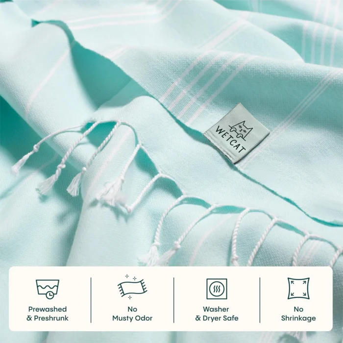 100% Turkish Cotton GREAT ON-THE-GO: Thinner than terrycloth but just as absorbent, our Turkish Towel is a must-have after your shower. Super-convenient to pack and carry, it’s non-bulky for easy travel. Compact and lightweight, it folds down to maximize space in your luggage or closet. SAY GOODBYE TO MUSTY ODOR: Famously fast drying, our pool towels are ideal at the beach or in other wet environments. Not only do they help save time, money, and energy with quick trips in the dryer, they’re also less prone to developing damp odors. QUALITY YOU CAN FEEL: Who wants a stiff, scratchy Turkish beach towels? At Wetcat, our fabric is prewashed for an unbelievably soft texture. Made in Turkey with OEKO-TEX certified natural dyed yarn, our decorative Turkish towels are safe for you and for the environment. CONVENIENT ANYTIME, ANYWHERE: Sandy beach towels are a problem of the past! Just shake off our beach blanket and you have no debris left in your bag. The best part? You can also use it as a yoga blanket, hair towel wrap, shawl, cover up, beach accessories and more. DESIGNED JUST FOR YOU: With 24 color options, our quick dry towel add a pop of personality to your towels, picnic or camping trip. Perfect birthday gifts for women and men alike, they’re great house warming presents for new home and special occasions. %$#