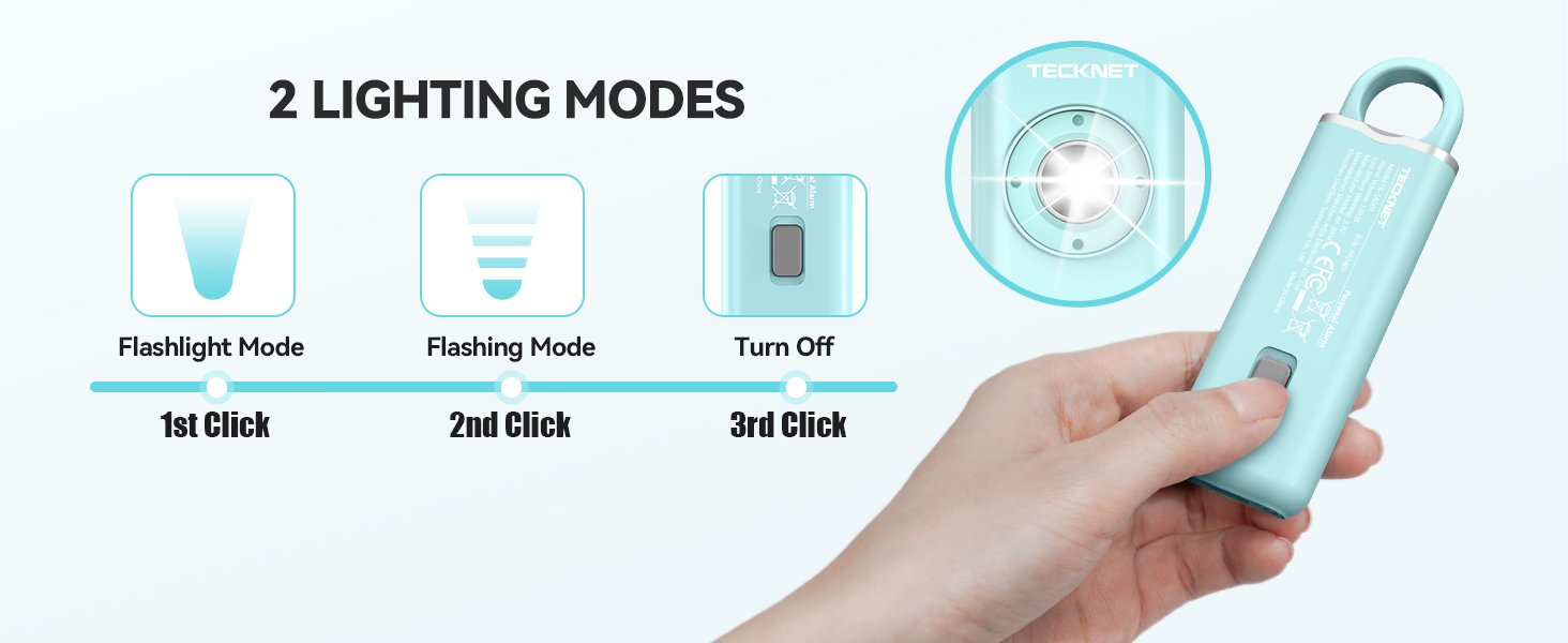 【A Priceless Gift】TECKNET safety alarm keychain is a great addition to any self defense weapons for women. It’s the perfect gift to share––with your sisters, daughters, mothers, friends, students, colleagues and elders in your community. This self protection keychain alarm is essential for women’s safety, but it’s our hope that you’ll never need to use it.