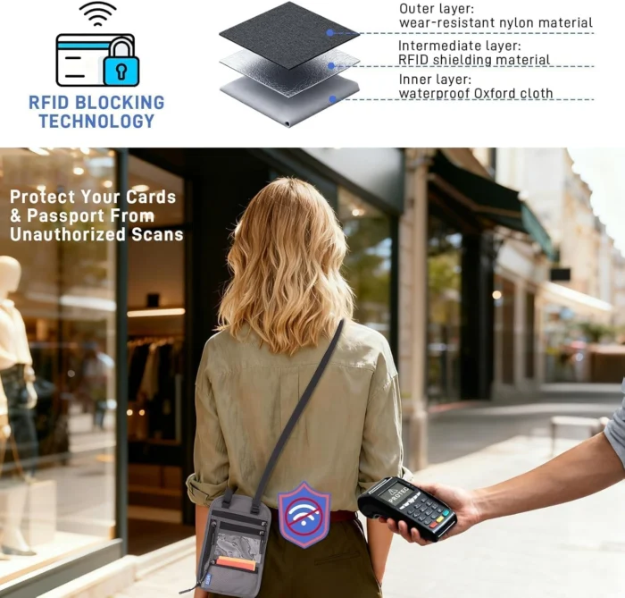 RFID BLOCKING PROTECTION FOR TRAVEL: Built with advanced RFID blocking material that helps prevent unauthorized scanning of passports, credit cards, and IDs. Ideal for crowded airports, public transportation, tourist attractions, and international travel