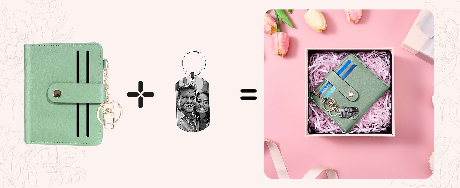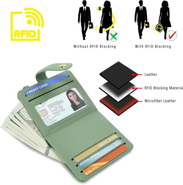 Small Wallets Woman RFID Blocking Leather Credit Card Holder – with ID Window – Card Wallets for Women – with Zipper Coin Purse – Keychain Wallet